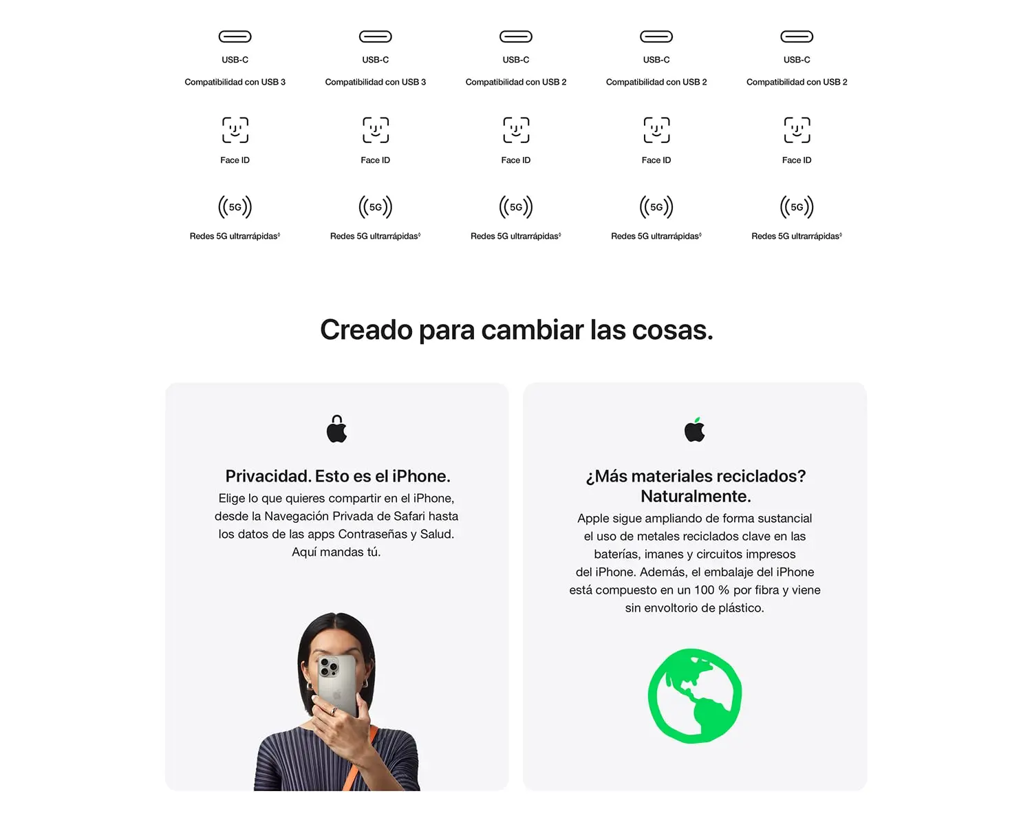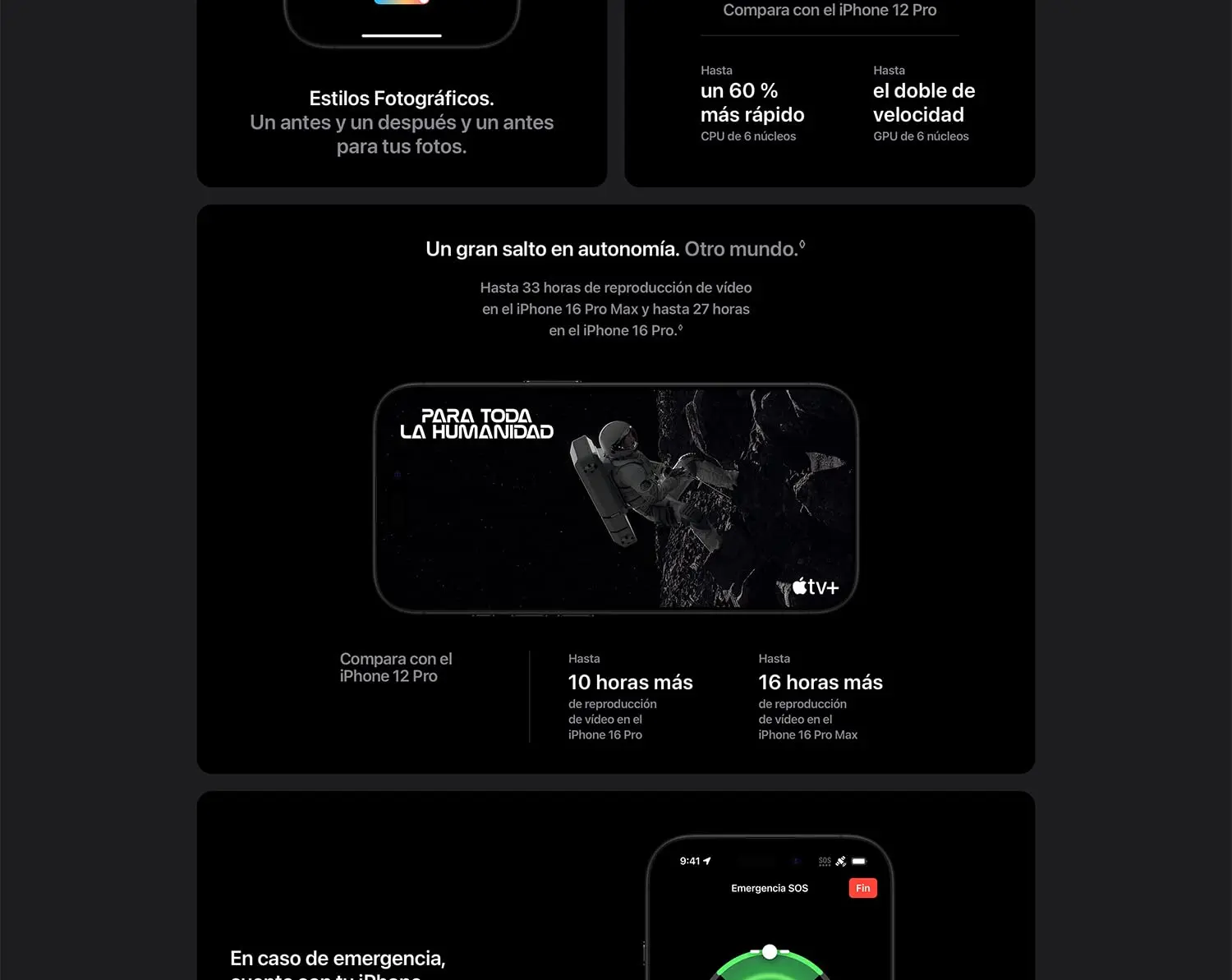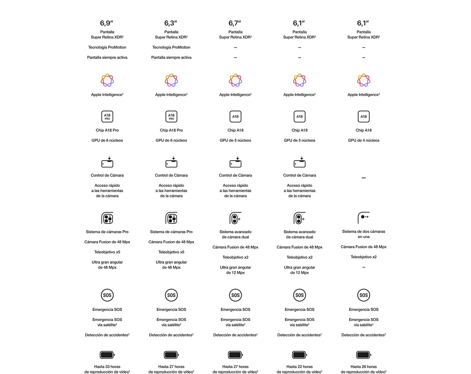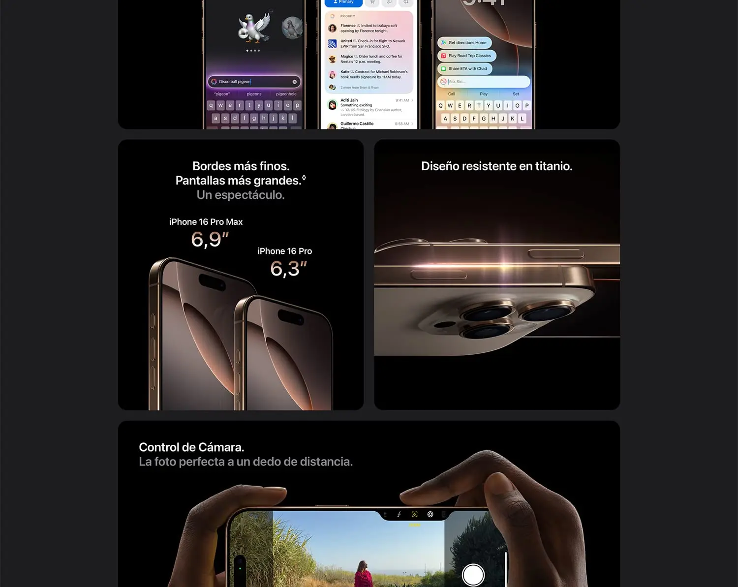 - Atributos adicionales: Impresionante acabado en Titanio, Control de cámara, Fotos de Revista, Vídeos de calidad profesional, Estilos fotográficos, Chip A18Pro con un rendimiento brutal, Un gran salto en autonomía